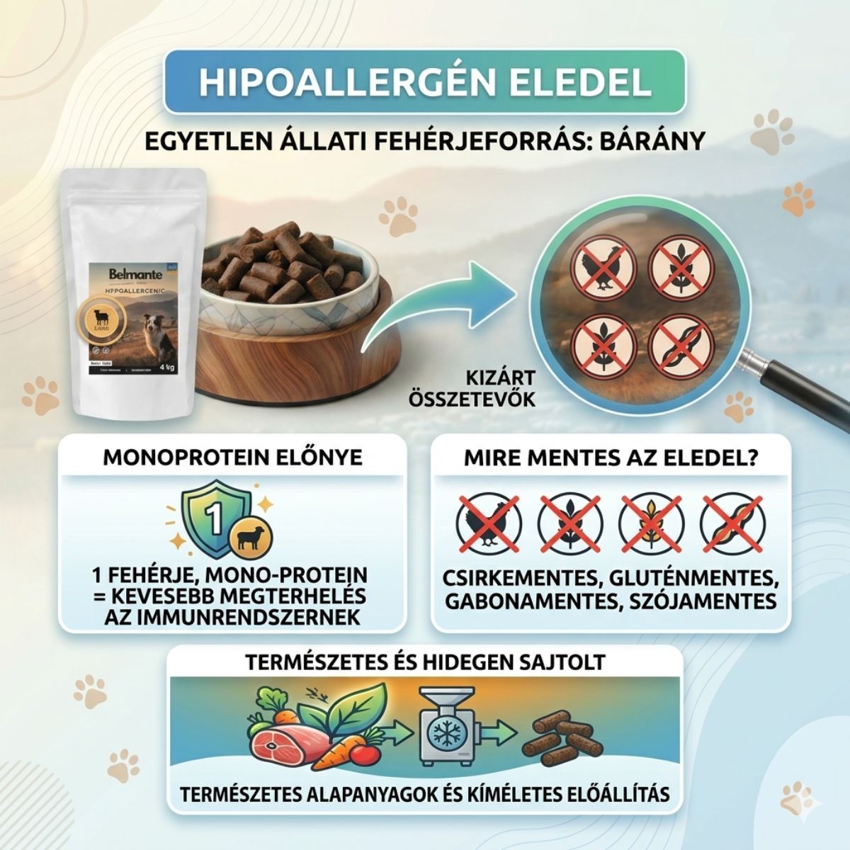 A Belmante Hipoallergén Bárányos Hidegen Préselt Táp szakmai alapjai