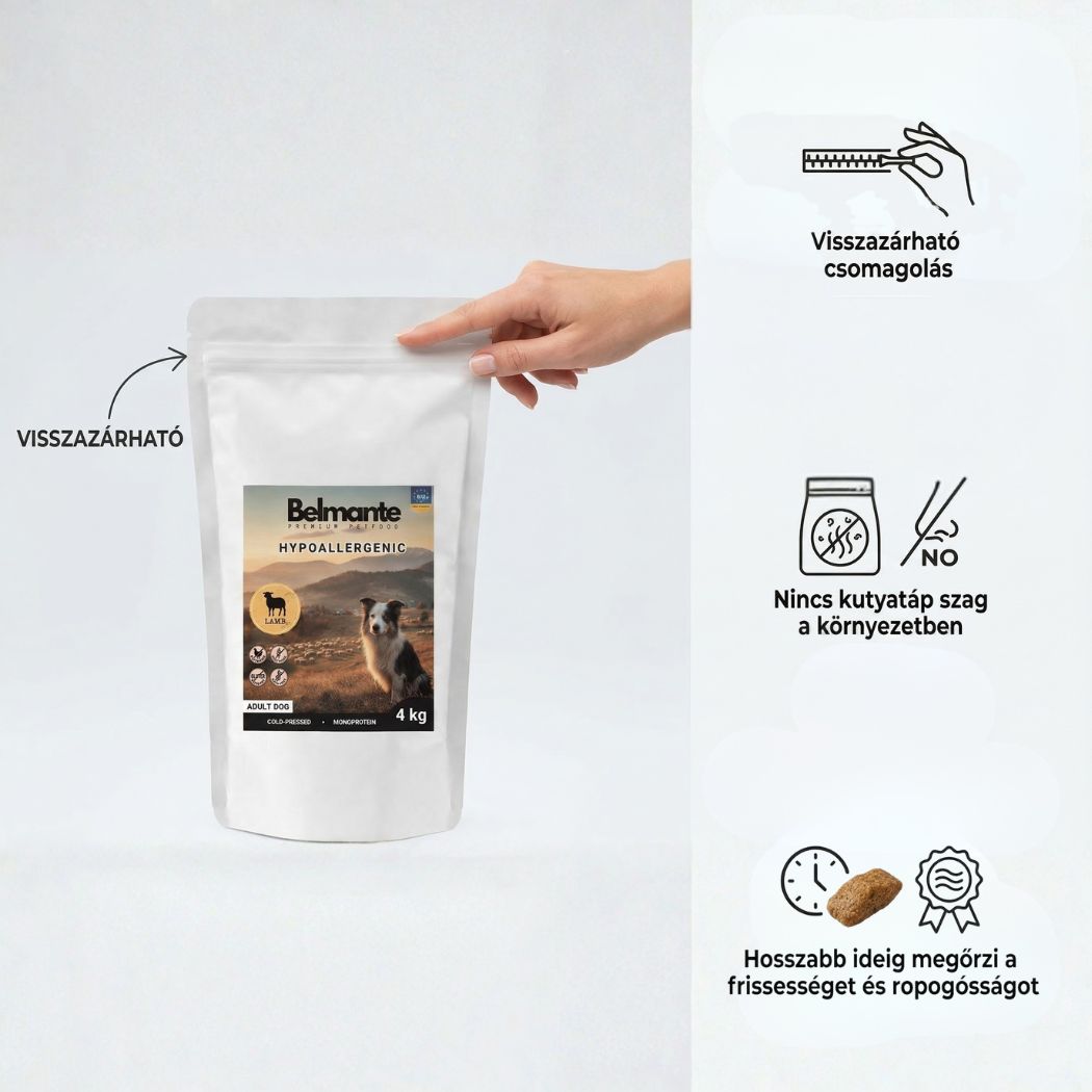 Belmante Hipoallergén Bárányos Hidegen Préselt Táp